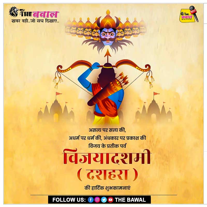 Dussehra : भारत में दशहरा बड़े धूमधाम से मनाया जाता है. दशहरा पर्व बुराई पर अच्छाई की जीत का प्रतीक माना जाता है.हिन्दू मान्यताओं के अनुसार, दशहरा पर्व हर साल आश्विन मास के शुक्ल पक्ष की दशमी तिथि को मनाया जाता है. इस बार दशहरा 2 अक्टूबर को मनाया जा रहा है. आप सभी को दशहरा पर्व कि द बवाल टीम की तरफ से हार्दिक शुभकामनाएँ